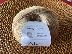 Alice est un mélange de 75 % de Mérinos d’Arles biologique issus de mouton élevés en Provence et de 25 % de lin cultivé dans le nord de la France et en Belgique et spécialement sélectionné pour ce fil pour sa très grande finesse et sa douceur. Le ressort naturel du mérinos d’Arles donne une belle élasticité au fil tandis que le lin apporte sa lumière, sa fluidité et ce toucher si agréable contre la peau. Ces deux matières très différentes sont mélangées intimement puis filé en peigné pour accroitre la résistance et la douceur des fibres. Ce fil est ensuite retordu à trois brins avec une tension calculée de façon à créer un fil équilibré et rond tout en gardant de la souplesse. Le fil est enfin teint avec des teintures écologiques et conformes au cahier des charges GOTS pour réduire leur impact environnemental. La fabrication de ce fil très particulier est réalisée pour nous en Italie près de Biella.