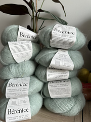 Bérénice was created to enrich the textures and colours of our yarns and open up new horizons for them. Combined with Ulysse, Gilliatt and Cyrano, it makes them discreetly shiny and irresistibly soft; combined with Albertine and Pénélope, it gives them lightness and voluptuousness for a precious knitting experience and creations.