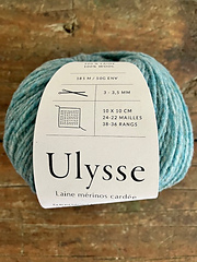 Ulysse est, comme son grand frère Gilliatt, un fil de laine cardée issue de mérinos d’Arles élevés en Provence et, selon les coloris, de mérinos noir élevés au Portugal dans le souci du bien-être des animaux et de la valorisation de leur laine. Toutes les étapes de sa fabrication sont réalisées en France dans un souci constant de limitation des traitements et des dépenses énergétiques.