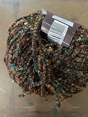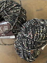 40% Wool, 28% Nylon, 18% Silk, 8% Polyester, 6% Acrylic with approx 105 yards per 50g that knits to 4 sts per inch on a US 8 needle.