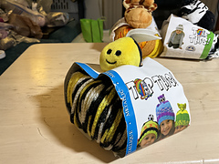 Top This!, a snuggly & silky yarn that comes with a whimsical character perfect for adorning the top of a knitted hat. The bright & colorful yarn is made up of three continuous textures, making it easy to knit a Top This! hat because stitchers never need to change yarn! Toddlers to teens will love wearing the playful and fun hat that knits up in no time. 1