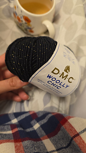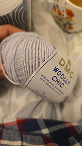 Woolly Chic, is a glamour version of the DMC Woolly yarn. A metallic thread was added to merino wool, bringing a touch of refinement and scintillating look.