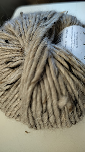 Donegal may be cotton, rayon, acrylic, polyester or a blend. It will not take the acid dye that the wool and alpaca accept, resulting in tweed bits.