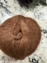 70% Super Kid Mohair, 30% Silk<p>From the elann.com website: “A glistening silk core gives this soft, super kid mohair blend lustre and color saturation beyond compare! Depending on needle size used, this versatile lace-weight can be knit at gauges from 18-24 stitches per 4”, and is especially lovely in lace patterns.”