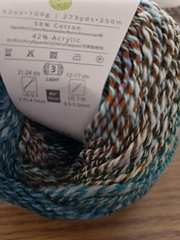Old English for “marble,” this splashy new Dk-weight is a cotton/acrylic blend. It provides a rainbow of shiny color that knits up to a cobblestone or “marbled” effect. Easy care for all types of garments.