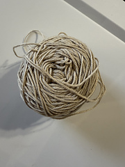 40% Alpaca, 30% Cotton, 30% Modal (rayon) with approx 260 yards per 100g that knits to 5.5 sts per inch on a US 6.0 needle.