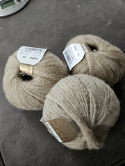 Current blend contains 70% Cashmere, 25% Schappe Silk, 5% Extrafine Merino. Earlier versions of this yarn contained 70% cashmere and 30% silk, no merino wool at all.