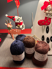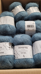 Tilia is a gorgeous mix of shiny mulberry silk sorrounded by a cloud of the lightest kid mohair. On the technical side Tilia is a fine, worsted spun and brushed yarn.