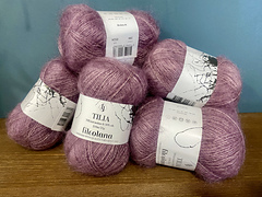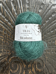 Tilia er en smuk blanding af blank mulberrysilke med en sky af let kid mohair omkring. Teknisk set er Tilia et tyndt kamgarnspundet og børstet garn.