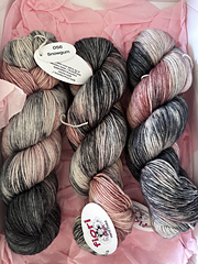 Hand dyed semi solid, gradient & multi coloured shades. Also sold in 50 gram skeins in a gradient set. Please adjust yardage and skein weight on individual stash entries. This is the same base yarn.