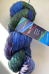 This is a heavy fingering weight, lighter in weight than Sea Wool Sport, which has the same fiber content. Some skeins may have 350 m, not 325.