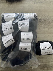 Fonty a récemment changé son alpaga qui est désormais légèrement plus épais, sans poil et beaucoup plus doux. Les nouvelles pelotes sont reconnaissables à l’étiquettes écrit en noir sur fond blanc et à la longueur (130m et plus 140m).