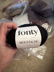 “MOUSTACHE est le dernier-né de la famille des fils mohair de la gamme Fonty constitué par OMBELLE - KIDOPALE - BLING-BLING - et MOUSTACHE. Entièrement naturel, il constitué d’un mélange précieux de trois toisons d’exceptions. Les 30% de fibres mohair super kid apportent cet aspect vaporeux, nuageux et flou typique des fils mohair. Les 20% de soie ajoutent des qualités de résistance et d’élasticité de la soie avec son rendu brillant et régulier. La fibre mérinos extra-fine complète l’ensemble en lui donnant son gonflant, son volume et sa douceur. La fibre mohair super kid est récoltée sur les plus jeunes chèvres de la race dite “angora”, historiquement d’origine caucasienne, aujourd’hui très majoritairement élevée sur les hauts plateaux d’Afrique du Sud, même si des élevages de grande qualité se développent en France depuis plusieurs années.