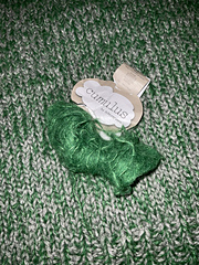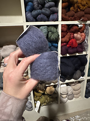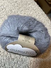 A heavy lace/3 ply weight yarn. This super soft yarn has a glistening silk core with a gentle halo of supersoft alpaca like soft pillowy clouds hence the name Cumulus.