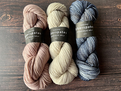 A robust high twist 100% Merino wool 4ply. This workhorse fingering weight yarn creates a warm but drapey fabric and makes cables pop out for glorious texture. Superb for sweaters and accessories.
