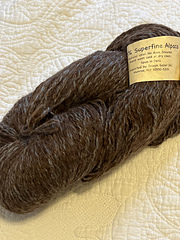 Although it knits up at a worsted weight, it has high loft and drape, and makes splendid shawls and scarves as well as light sweaters.