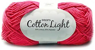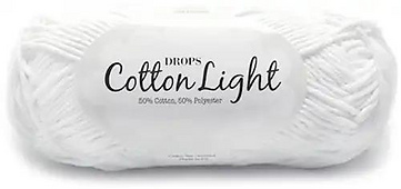 NOTE: This yarn has changed fiber content. The original DROPS Cotton Light was 60% cotton, 40% acrylic. See the original yarn entry for more information. The greatest change is due to the change in fiber content. This gives the yarn a slight sheen that the older version lacks. It looks smoother and very different from before. It is not recommended to mix the old and the new Cotton Light yarns.