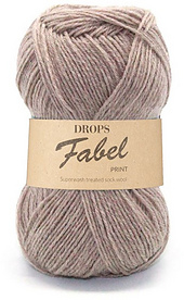 DROPS Fabel is a sock yarn that is also very suitable for garments, worked on a different gauge. For socks the standard gauge in DROPS patterns is 26 sts per 4” and for garments the standard gauge is 23 sts per 4”