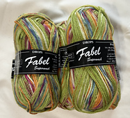 Both print and long print colours in DROPS Fabel are produced with a method called “fancy dyeing” that differs from other methods in that each dye lot has small variations in both pattern and nuance. This is no fault or defect, but part of the yarn’s character.