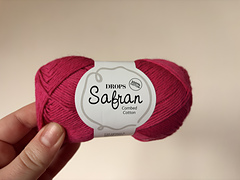 DROPS Safran is spun from combed, long, Egyptian cotton fibers that are twisted together in pairs, before being twisted together again. This method results in extra durable garments with great surface properties!