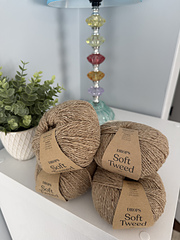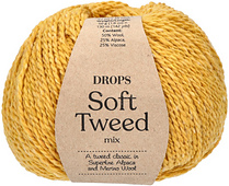 DROPS Soft Tweed is, like its name implies, a soft tweed yarn, made from a combination of merino wool, superfine alpaca and viscose. The yarn is constructed by carding these fibers together with small felted “tweed buttons” that add speckles of colour to define the look of this quality. Being a carded yarn means that DROPS Soft Tweed is lighter and breathes better than similar, combed yarns - while being specially suited for hand knitting.