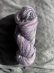 All of our yarn is a 40% Good Karma Farm Alpaca and 60% merino wool, spun and dyed by us on our farm, soft and bouncy.