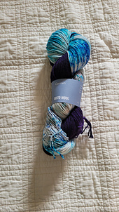 An intriguing combination of saturated solid plus exuberant speckled color, creating stripes that dance across needles and hooks in rhythmic combinations. A delightful challenge to combine Carmen into ‘engineered’ projects that purposely plan stripe placement.