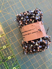 “When I saw this yarn, it made me smile. Such delicate pompoms with happy colors! They are wonderful used by itself in a fabric or wonderful added into it with other yarns. Just knit in stockinette in a larger needle. Throw it in the weft as an accent”.