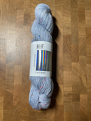 Tweed DK yarn and the coloured bits are our own hand-dyed waste - the ties that we take off the hand dyed skeins. We save them very diligently and it’s a total labour of love!