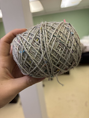 We have been collecting the ties for a while and I finally found a mill that could process these, which means re-carding them, blending and spinning into yarn again. We now have a batch of this lovely taupe, grey-ish tweed yarn with colourful speckles. I love how neutral it is with a colourful bit here and there. It comes in one colourway only and I think it’s just calling for sweaters and cardigans.