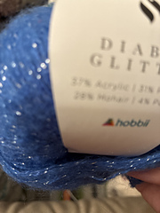 When knit together with another yarn, like a wool or wool blends Diablo Glitter adds a little sparkle without becoming overpowering. It will make the overall look more fluffy and thick.