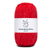 Honey Bunny Shine is a super bulky velour yarn made out of 100% polyester with a sprinkle of tiny glitters to it. The thin glittery strands are very subtle and blend seamlessly in the structure of the chenille yarn. This yarn is so soft that the glitter can hardly be felt, so feel free to use it for garments/toys for children as well.
