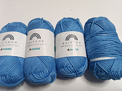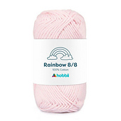 Rainbow Cotton 8/8 is an 8 ply DK weight whereas the classic 8/4 version is 4 ply fingering weight. This amazing cotton yarn is made from 100% soft and natural fibre and you are guaranteed a top quality yarn at a bargain price. Each ball of yarn has the EasyStart feature making it easy to extract the starter tread from the centre of the ball.