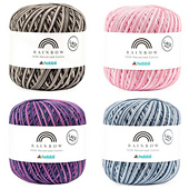 Like our solid-colored Rainbow Lace, the print version here is suitable for crafting with a small hook or needle. The shiny, strong yarn is especially suited for lace, tablecloths and other fine pieces of handicraft, allowing the individual stitches to stand out nicely and clearly.