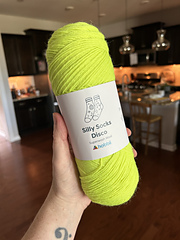 Silly Socks Disco is made out of 75% wool which will keep your feet warm and cozy, while the 25% of polyamide (nylon) will make your socks resistant and sturdy. Moreover, this yarn is produced with a special dye to achieve the reflective effect. In fact, when exposed to ultraviolet light, the yarn will glow, making it perfect for adding a unique twist to any project.