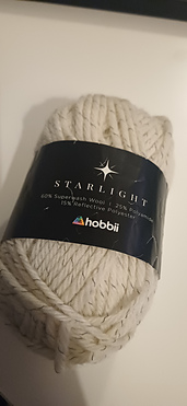 Starlight is a lovely, bulky wool mix twined with reflective thread. The reflective thread adds a subtle mixed look to the yarn, and will reflect strong sources of light in the dark (e.g. headlights of a car or flash from the camera). Perfect for those dark Winter months during which it is crucial to be seen in the traffic.