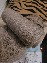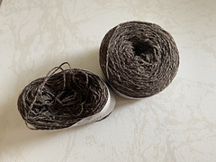 The yarn contains a little spinning oil. The oil will disappear at the first wash - and the yarn will become extremely soft.