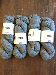 FORGE is a heathered blend of 70% Merino wool, sourced in New Mexico and Colorado, and 30% Corriedale wool, sourced in upstate New York. Produced from sheep to skein in the United States, Forge is spun at Battenkill Valley Fibers in Greenwich, New York, and dyed at Caledonian Dyeworks in Philadelphia. Forge will be available in four undyed natural colors, eight overdyed heathers, and a dyed solid black.