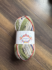 A bright a vibrant multicoloured self striping yarn which will knit to most double knit patterns,