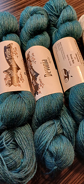 Devonia is one of our all time favourite bases. It is rather special to us as it is the first blend we created which was made exclusively using local West Country fibre, something we are now doing more and more of as we loves it! For Devonia we chose a beautiful blend of Exmoor Blueface, Bluefaced Leicester and Lustre breeds. The Exmoor Blueface is our local sheep and brings its wonderful springy nature, the Bluefaced Leicester lends its outstandingly soft handle and lustre to the yarn, whilst the lustre breeds (a combo of Wensleydale and Romney) add their qualities of beautiful golden sheen and fine drape.
