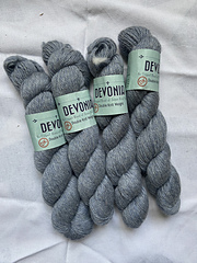 Devonia is one of our all time favourite bases. It is rather special to us as it is the first blend we created which was made exclusively using local West Country fibre, something we are now doing more and more of as we loves it! For Devonia we chose a beautiful blend of Exmoor Blueface, Bluefaced Leicester and Lustre breeds. The Exmoor Blueface is our local sheep and brings its wonderful springy nature, the Bluefaced Leicester lends its outstandingly soft handle and lustre to the yarn, whilst the lustre breeds (a combo of Wensleydale and Romney) add their qualities of beautiful golden sheen and fine drape.