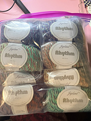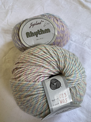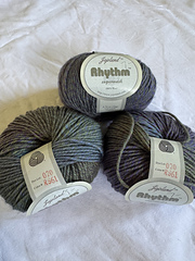 100% wool. Two types of yarn: Rhythm and Rhythm Superwash. Rhythm yarn colors start with Mxx, Rhythm Superwash color starts with RSxx.