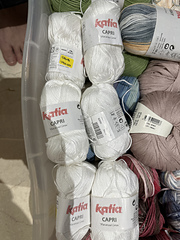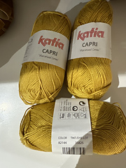 - Capri in roman letters: 26 sts x 36 rows = 4 in (10 cm) with 3.0 mm needles