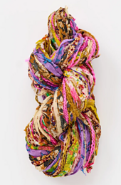 In our Mixtape yarn, a little bit of all things Knit Collage combine for a stripe-tastic yarn mix of wool, screen printed cotton, boucle, and a hint of sparkly lurex. A colorful, textural explosion in every skein!