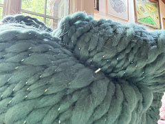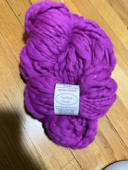 Our Spun Cloud yarn is fluffy, feather light and soft as can be. This yarn is 100% wool with 2 skinny strands of sparkly lurex plied around it in a subtle thick and thin texture. Spun Cloud comes in giant skeins and a beautiful range of solid and heathered colors.