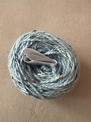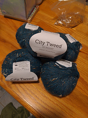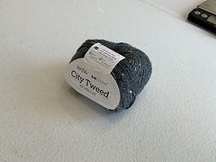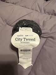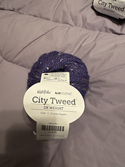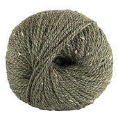 “This yarn begins with alpaca and Merino fibers dyed two different colors and then blended together to make a subtly rich, lustrous heather. We chose neutral colored donegal tweed neps to incorporate into the 2-ply yarn. The high ratio of neps gives City Tweed a traditional appeal. The use of Merino and alpaca makes it soft and warm. The DK weight is gorgeous in two-color knitting.”