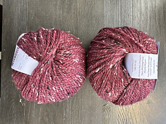 “This yarn begins with alpaca and Merino fibers dyed two different colors and then blended together to make a subtly rich, lustrous heather. We chose neutral colored donegal tweed neps to incorporate into the 2-ply yarn. The high ratio of neps gives City Tweed a traditional appeal. The use of Merino and alpaca makes it soft and warm.”
