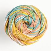 Just because a yarn is durable and hardwearing doesn’t mean you have to sacrifice your love of color! The same Dishie that you know and love is now available in fun range of multi-color shades. Choose from subtle, tonal shades or go for bright and bold tones with fun pops of color for projects that knit up quickly with this durable, worsted weight yarn. Use Dishie Multi with simple stitches for quick and easy dishcloths, hand towels, and home décor, or experiment by combining with Dishie’s selection of solids for even more colorful possibilities! This multi-purpose yarn also works wonders when used for hats, toys, market bags and more.