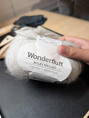 Softer than a kitten, fluffier than a cloud, Wonderfluff is a technological marvel! Silky baby alpaca and fleecy merino fibers are blown into and caught in a lightweight tube of nylon mesh. The result is a yarn that’s beautifully bulky yet lightweight and warm, with surprising resiliency. Wonderfluff works with a wide range of needle sizes and with 142 yards per 50g, the generous yardage allows for large, luxurious projects that won’t break the bank.