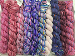 Koigu’s Pencil Box is a set of 25g ‘demi’ hanks in 10 different (usually variegated) colourways.
